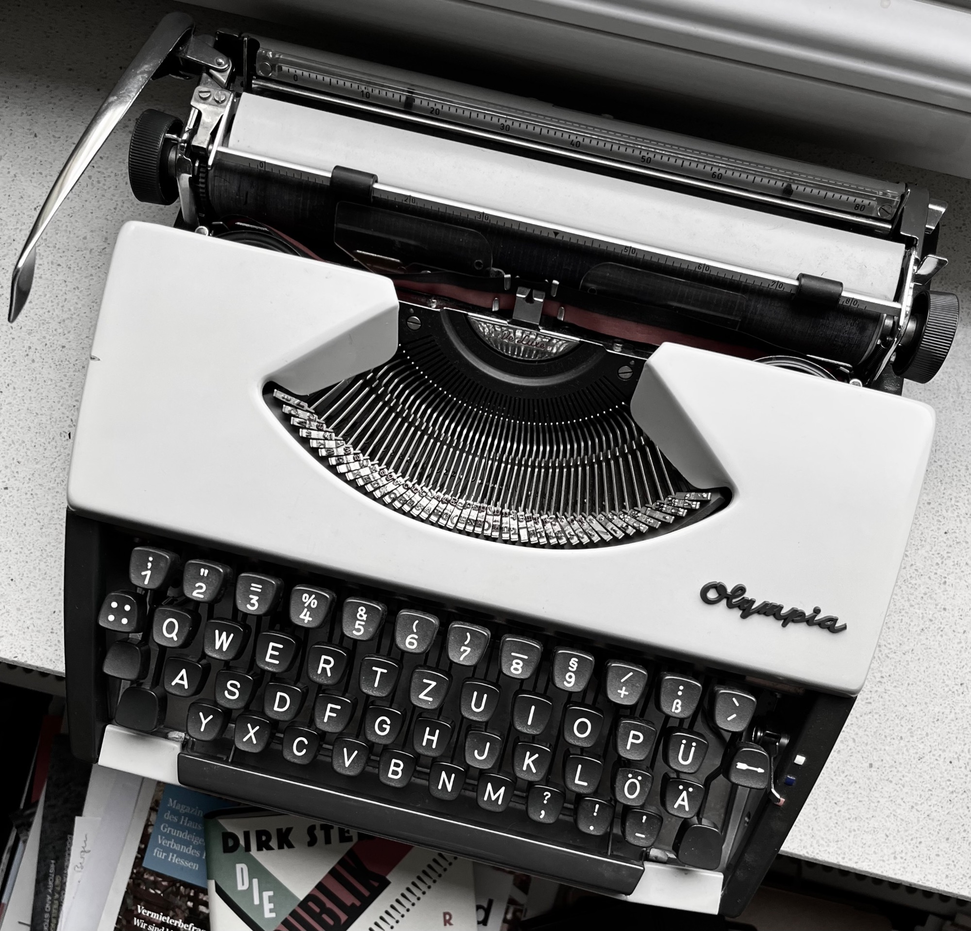 Unter dem Markennamen OLYMPIA WERKE wurden seit 1950 mechanische Schreibmaschinen hergestellt. Es handelte sich um drei Arten: Großschreibmaschinen für Büros (Typ SG), mittlere Größen u.a. für den privaten Gebrauch (SM) sowie portable Flachschreibmaschinen für den mobilen Einsatz wie Schriftsteller und Journalisten (z.B. Splendid 33/66/99) - hier eine kleine Auswahl.